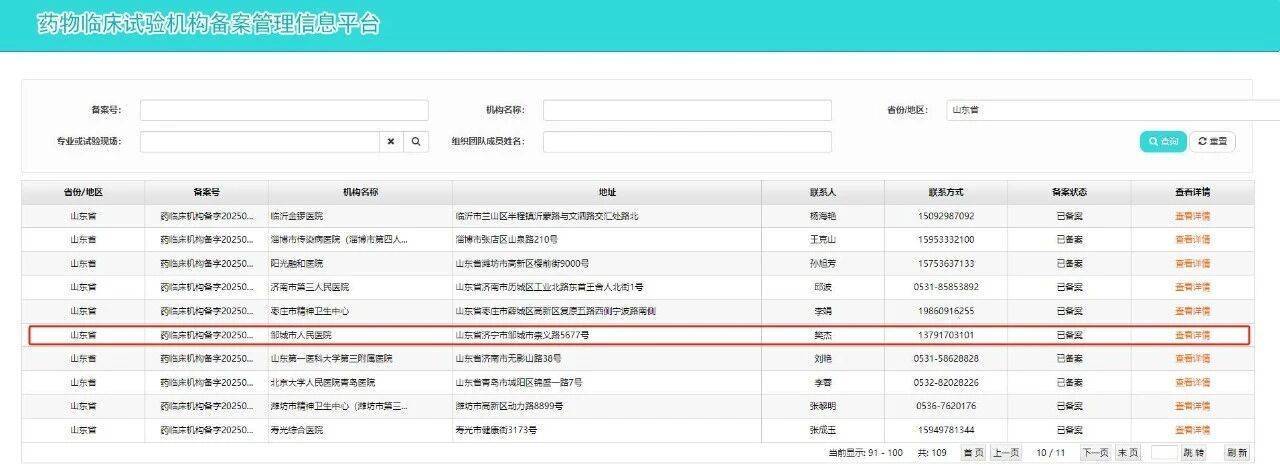 1月13日,大众网记者从国家药品监督管理局药物临床试验机构备案管理信息平台获悉,邹城市人民医院通过国家药物临床试验机构(GCP)备案(药临床机构备字2025000118)。