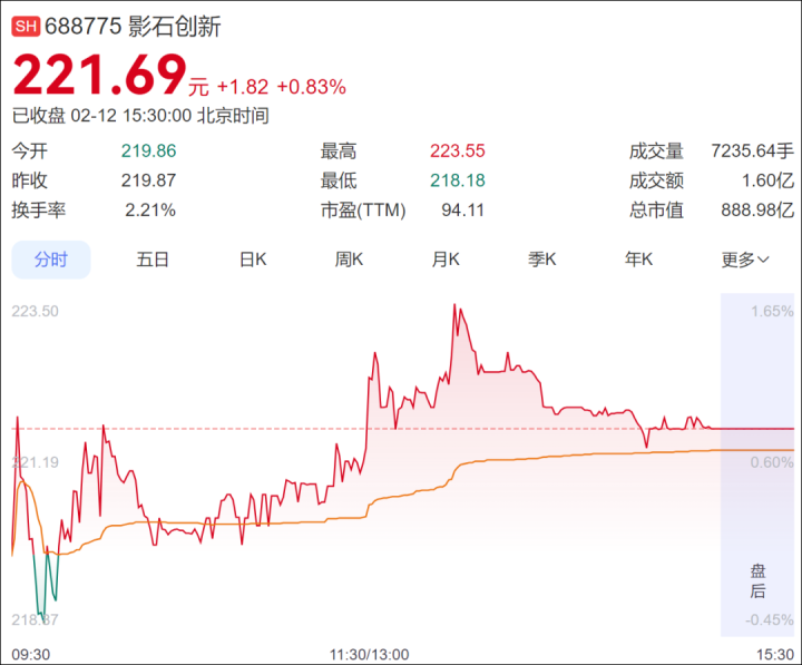 市场方面,影石创新12日收报221.69元/股,上涨0.83%,最新市值888亿元。