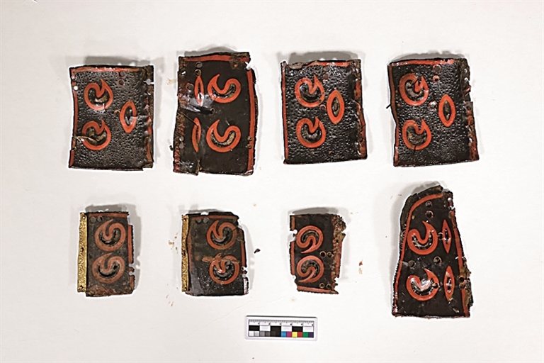 青海热水2018血渭一号墓出土的漆甲片(修复后)
