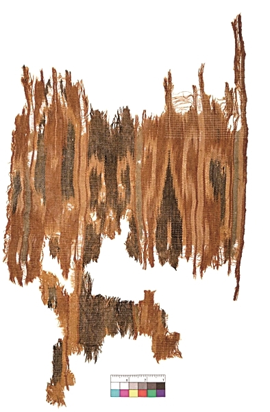 青海热水2018血渭一号墓出土扎经染色织物实物图